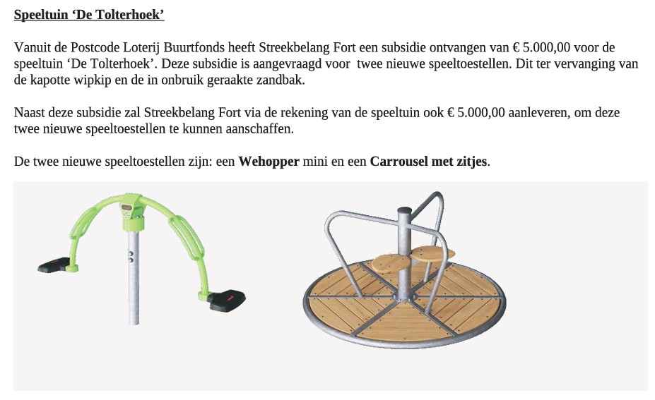 Onder de verantwoordelijkheid van Streekbelang valt ook de Speeltuin “De Tolterhoek”.