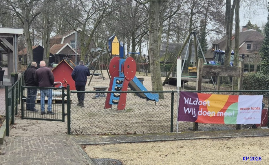 Ook in de speeltuin is al het één en ander gebeurd, maar in verband met het slechte weer is besloten hier volgende week mee verder te gaan.